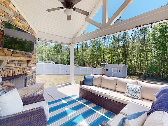 Welcome to 141 Hart Preserve! This beautiful home has wood flooring throughout the main level. It has an open living area with a wood burning fireplace. The formal dining room has coffered ceilings. When entering from the garage you will find built in cubbies for an easy drop zone. Upstairs you will find all 4 bedrooms and 2 full baths. Each room is spacious and has a large closet. The master suite features double doors, tile shower, soaking tub, double vanity and a large walk in closet. The back patio has a stone fireplace and retractable sun shades. It is ready for your enjoyment! The backyard is fully fenced and has an additional storage shed. Come see 141 Hart Preserve this weekend!