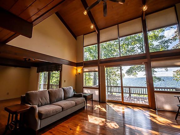 BLUFF VIEWS...This Custom-Built Timeless Beauty sits on 4 acres with Million-Dollar Views. Features: 3 bedrooms, 2 baths at 1900 sq ft. the Tremendous great room with awesome natural light, beautiful stone wood burning fireplace, mahogany sliding door leads you to 12x52'+ freshly painted 2 story deck, large eat in kitchen loads of cabinetry and storage w/dining area, hardwood floors, 12x12' screen porch again with Super Views of the Beautiful Bluff, main suite on the first-floor w/stand up shower, garden tub, large walk in closet, w/deck access and again the Incredible Views! 2 bedrooms, full bath and loft on second floor. A whole house Generac generator, mahogany doors/windows and trim (inside and out), oversized finished garage, heated and insulated Masterbilt workshop w/electricity. SELLER OFFERING $10,000 CREDIT TO BUYER TO BUY DOWN THEIR INTEREST RATE WITH AN ACCEPTABLE OFFER. Buyer to verify all information prior to making an offer.