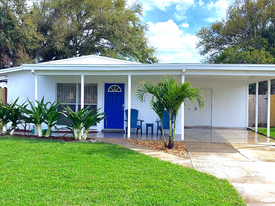 3 BEDROOM, 2 BATH, CARPORT HOUSE IN AVON BY THE SEA. • WALK TO BEACH. • CENTRAL HEAT AND AIR • NEW BLINDS, CEILING FANS, STOVE, AND REFRIGERATOR. • BEAUTIFUL TERRAZZO FLOORS THROUGHOUT. • LARGE SHOWER IN MASTER BATH. WASHER DRYER HOOKUP IN UTILITY ROOM. • 1 AND 1/2 BLOCKS TO BEAUTIFUL CLEAN BEACH. • LARGE SHADED FENCED YARD. • NEW INTERLOCKING PAVER PATIO • NEW SPRINKLERS AND SOD • ARTESIAN WELL WATER PUMP FOR IRRIGATION. • CLOSE TO PORT CANAVERAL, SPACE CENTER, EASY ACCESS TO BEACH LINE, I 95, AIRPORT AND ATTRACTIONS.