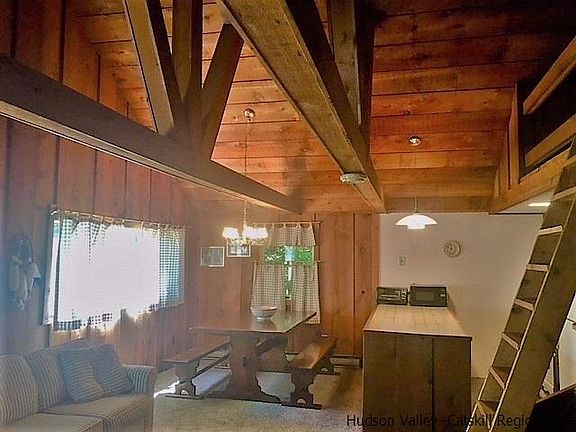 10k price cut Good deal just got event better! Don't wait take advantage now and make this rustic and secluded country escape in the cool Catskill mountains close to Hunter and Windham Resorts your own. Adorable Chalet tucked away on a town maintained road at the end of a cul de sac is peaceful and quiet- all you hear are the birds and whispering pines. Exposed beams and woodstove provide charm and warmth. Petite foot print but big on fun, home can sleep up to 10 people comfortably. Freshly painted, new carpet, new roof and baby barn for storage. All you need for weekending with your besties is here. Home sweet home