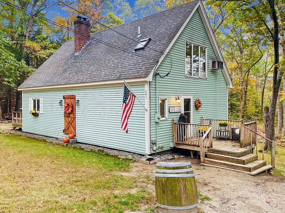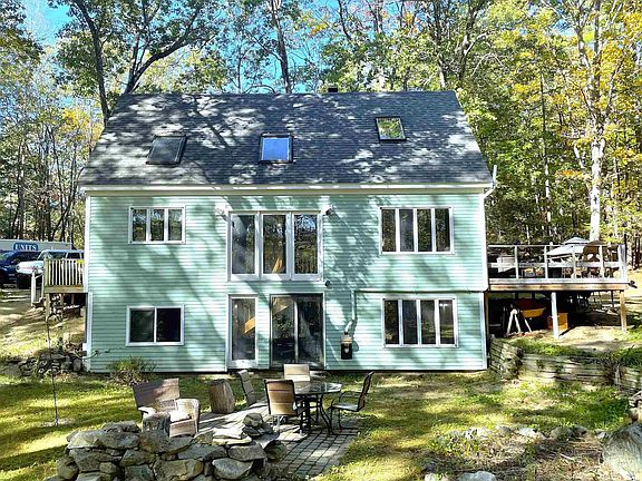 Neighborhood improvements and maintenance efforts underway in surrounding area. This unique 3-bedroom home is perfect for those seeking a residence that stands out from the cookie-cutter crowd. Featuring a flexible layout with one bedroom upstairs and two on the finished lower level complete with a full bath, this space is ideal for guests, a home office, or multigenerational living. The primary bedroom upstairs offers a private half bath for added convenience. The main living area boasts cathedral ceilings, exposed wood beams that lend a touch of rustic charm, and a wood-burning stove, all opening to a large deck that overlooks the peaceful backyard and stream. A pellet stove downstairs adds cozy efficiency, while the outdoor fire pit invites year-round enjoyment. The kitchen and dining area flow seamlessly for everyday living and entertaining. Situated on a picturesque 2-acre lot just minutes from downtown Newmarket, this home provides a rare sense of retreat while maintaining easy access to local amenities and commuter routes. Discover the warmth, character, and country-inspired appeal that make this home truly special. Additional agent information available in MLS remarks.