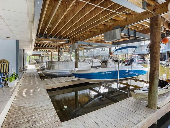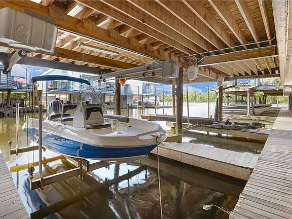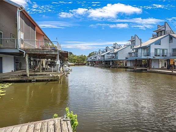 Vacation Year Round ! Prime Waterfront condo on the Tchefuncte River. Raised Condo has wonderful covered bar/entertainment area on ground level as well as a covered slip with boat hoist. 2 car covered parking. Primary living level consists of open living/Dining/ Kitchen areas with wood floors and opens to a Patio that has views of the River and glorious sunsets. There is a spacious bedroom on this level. Upstairs features large primary suite and sumptuous bathroom plus 3rd bedroom. Great Community Pool