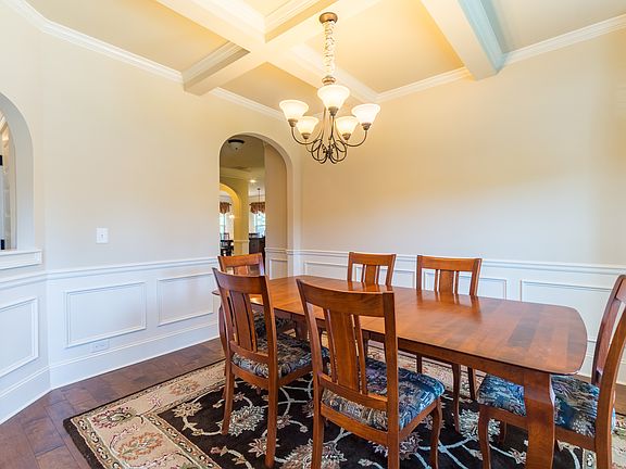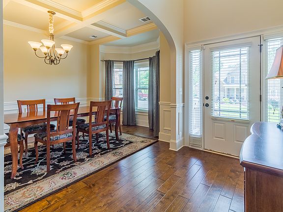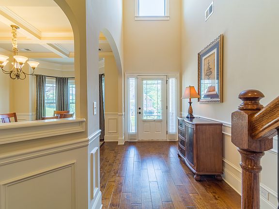 This timeless design offers an owner's retreat on the main with expansive closet and oversized bath. The kitchen features lots of cabinets and opens to a breakfast area and family room with fireplace and dramatic arched openings. There is also a formal dining room and a dedicated media room up. Secondary bedrooms include a Jack and Jill bath, and there is lots of extra storage. The owners have added: Ceiling fans to all bedrooms 25' x 25' basketball court/patio to backyard A third driveway Fire pit Hot tub Pond with waterfall Retaining wall with swing/seating area 22' x 25' patio off back porch 8' x 20' flagstone landing for hot tub/grill area Electrical outlets for patio and pond areas Water spigot to rear of property Raised garden beds at rear of property with separate irrigation Backyard irrigation added. Hammock post to rear of property Pear and peach trees in garden area Shrubs replaced with varieties that will require less or no pruning.