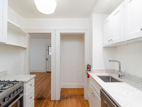 This charming one bedroom apartment is located on the first floor of an excellently located building. There are original hardwood floors throughout and a private porch off the rear. The bathroom has been renovated with a new vanity, granite countertops, subway tile and a custom shower stall. The kitchen has also been updated to include new cabinets, butcher block counters, new gas stove, and farm sink. The bedroom and living room are both well sized. Gas heat, gas hot water, washer and dryer in the building, off-street parking. Available April 15th or sooner; $1700/mo Tenant is responsible for all utilities. Property owner pays for trash services. Owner pays for rubbish. Tenant is responsible for all other utility costs. Pets are allowed. There is no pet deposit, however pets are $50/mo.