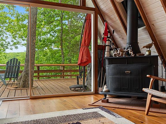 Experience your own private lakeside getaway. This Chalet is situated on the 50-acre Lake Innsbrook. The Chalet has large windows offering panoramic views of the lake, extra-large wrap around deck, and a canoe resting nearby on the dock adds to the serene atmosphere. Gorgeous, distressed hardwood floors throughout the entire Chalet. Featuring a Wood-burning fireplace/stove. Insulated pine tongue & groove ceilings. Kitchen has a double sink, plenty of counter space and a wine/beer cooler, stacked stone veneer backsplash. 3 private bedrooms and a loft area. Primary bedroom on first floor. A full bath is located on each level. Outdoor firepit and benches. The chalet comes mostly furnished. Not a full-time residence. It offers an abundance of amenities including golf, dining, outdoor concerts, over 100 lakes, 13 sand beaches. Complex with a pool, lazy river, gym & fitness center. Chalet comes furnished minus personal items. Cannot be a primary residence or rented out.