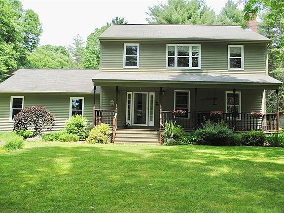IMMACUALTE 1,930 SQ FT COLONIAL SITUATED ON 2.47 ACRES WITH A LOVELY FARMERS PORCH OVERLOOKING A WATERFALL POND! DETAIL IS OFFERED IN EVERY ROOM! BEAUTIFUL KITCHEN WITH HICKORY CABINETS AND UNDERNEATH LIGHTING, GRANITE COUNTER TOPS, DOUBLE OVEN AND COOKTOP. FORMAL DINING ROOM WITH GLEAMING HARWOODS, STEP DOWN INTO LIVING ROOM WITH FIREPLACE, MASTER BED WITH BATH AND HUGE WALK IN CLOSET AND A BALCONY TO SIT AND ENJOY A BREATHTAKING VIEW!! FAMILY ROOM WITH PELLET STOVE AND SLIDERS LEADING OUT TO AN AMAZING PRIVATE BACKYARD, PATIO, DECK, OUT BUILDINGS, HOT TUB. FINISHED BASEMENT, 2 CAR GARAGE AND WALKING DISTANCE TO BOAT RAMP TO KAYAK AND CANOE!
