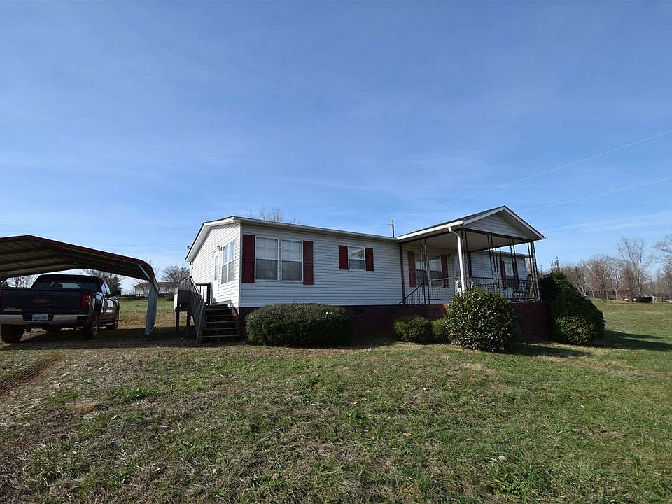 Nicely maintained 1997 Double wide mobile home with split bedroom plan. This home has a nice open family area in the middle with a fireplace and gas logs. The left side has a kitchen and breakfast area that leads to a side door. The laundry/mud area is at this side door. The master bedroom is on the left side and features a walk in tub. The right side has a full hallway bath with a huge new shower. There are two smaller bedrooms on this side also. Heat pump is only a year old. The front porch is large and covered. Storage building in back conveys. There is two-car metal carport beside the house. House is brick underpinned. There is no HOA in this area and although Kanaan is a private road, there is no road agreement in place. Kanaan is an unpaved road. The property is 1.14 acres and includes the driveway area all the way to Kanaan Drive.