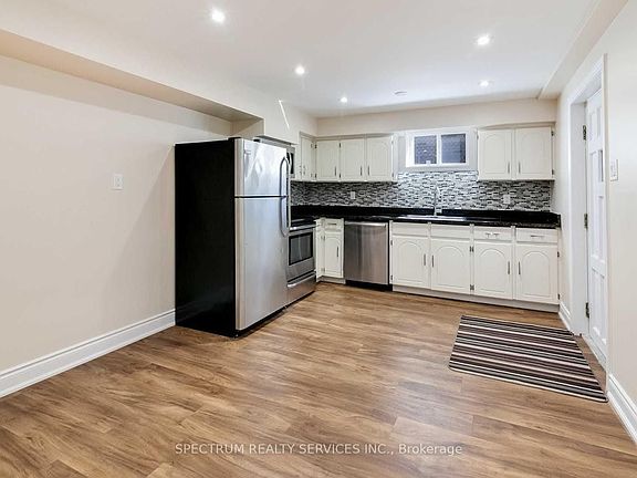 Stunningly Renovated Lower Level Apartment Featuring a Spacious One-Bedroom Plus a Versatile Den - Perfect as an Office or Study Area. Enjoy a Private Rear Entrance, Gleaming Hardwood Floors, and Stylish Pot Lights Throughout. The Custom Kitchen Boasts Brand New Appliances, While the Elegant 4-Piece Bathroom Features a Modern Renovation. A Perfect Blend Of Style and Comfort, Ideally Located Just Minutes From York University and Public Transit.