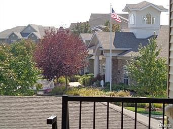 BEST LOCATION IN TOWN! HOP RIGHT ON 364 AND BE ANYWHERE IN A FLASH! WHEN YOU GET HOME, RELAX IN YOUR COMFY CONDO, TAKE A RIDE ON THE KATY TRAIL, OR ENJOY ONE OF THE MANY AMENITIES THIS COMPLEX HAS TO OFFER..SUCH AS THE INDOOR POOL, OUTDOOR POOL, TENNIS, WORKOUT FACILITIES, OR THEATRE ROOM TO MENTION JUST A FEW. BACK AT HOME, YOU WILL ENJOY ALL THIS CHARMING, MOVE IN READY HOME HAS TO OFFER-GREAT KITCHEN WITH GRANITE COUNTERS, CERAMIC FLOORING, 42" CABINETS, B/I MICROWAVE, D/W & REFRIGERATOR. NICE MASTER B/R HAS ROOMY WALK-IN CLOSET, CEILING FAN, BATH HAS ADULT HEIGHT VANITY W/GRANITE TOP, CERAMIC FLOORING & LINEN CLOSET. LIVING ROOM HAS VAULTS & OPENS TO PRIVATE DECK W/GREAT VIEW OF THE LAKE, FOUNTAIN & WATERFALL & A STORAGE LOCKER! UPPER LEVEL MAKES A GREAT 2ND BEDROOM, OR LOFT/OFFICE AREA & IS COMPLETE WITH B/I DESK, CLOSET, SKYLIGHT & FAN. THE LAUNDRY ROOM IS COMPLETE WITH WASHER & DRYER (NOT WARRANTED). THIS ROOMY ABODE HAS 1061 S/F OF LIVING AREA AND IS READY FOR A NEW OWNER! SpecialListingConditions: Foreclosure Location: End Unit, Upper Level
