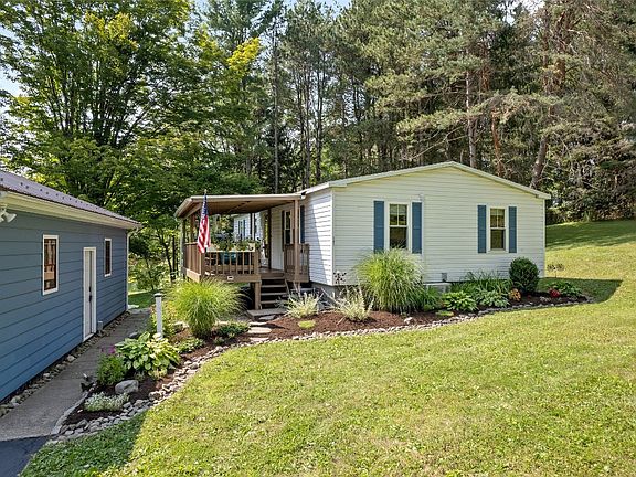 Welcome home to this beautifully remodeled 2bed, 2bath home on 2.24 acres! Step inside to find new laminate flooring throughout. A stunning kitchen makeover featuring a custom butcher block island, granite countertops, custom cabinetry, and brand-new appliances. The living room and bathroom have been enhanced with charming shiplap accents, while the entire interior has been freshly painted w/newer windows. The master bathroom has been completely transformed with a new shower, sink, and toilet, alongside a custom vanity in the main bathroom. Outside, you'll find a HUGE garage, newly insulated, drywalled with added shelving for storage with a newer metal roof. The backyard shed features a matching metal roof and fresh paint. Recent landscaping improvements include removal of several ash trees provide space and peace of mind but of course they kept the delicious apple trees. This property is move-in ready and offers the perfect blend of modern upgrades and rural tranquility—don't miss out