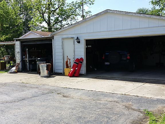 White bungalow sitting on 4 parcels enclosed by fence with gate. Outbuildings include 2.5 car garage, smaller garage and workshop with covered patio. Basement has concrete floor and concrete block walls. Shower and vanity in basement. Pantry with freezer. New windows, roof and central air (1997-2000). Laminate flooring installed Dec 2011/Jan 2012 throughout house. Basement can be accessed inside or from the outside. Well water with capability of connecting to city water; fire hydrant across the street. Neighborhood Description: Truly a township subdivision. No sidewalks, few street lights. New Kroger store will be built less than a mile down SR 72.
