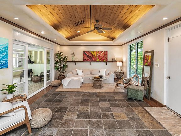 This is a special spot in one of Kailua's most sought-after neighborhoods – Kuulei Tract, loved for its proximity to world-famous Kailua Beach and Kailua town, with a small-town vibe where neighbors stop and greet you. Perfectly positioned, this property is only five homes from Kalaheo Ave and around the corner from Kalapawai Market, a popular stop for beachgoers. If you've spent any time in the neighborhood on your way to Kailua Beach, you may already be familiar with this property and its landmark trellis. Now's your chance to own it! The 4-bedroom, 3-bath home offers almost 2,000 sq ft of living space on a single level. The living area is adorned with beautiful slate tile floors, while vaulted ceilings create height and recessed lighting brightens the space. Three of the bedrooms have brand new carpets, while an enclosed lanai extends your living area, with double doors to the expansive back yard. Imagine the possibilities with ample room for a pool, or bring your green thumb! Enjoy everything Kailua Town has to offer – restaurants, boutiques, coffee shops, farmers' markets, one of the best sandy beaches on O'ahu and the turquoise waters of Kailua Bay!