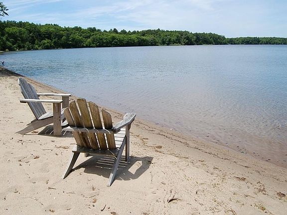 Rare find waterfront home with extensive sandy beach on Silver Lake! Boasting beautiful water views throughout the home. This New England home offers an open floor plan with many options for growth potential. The kitchen has stainless appliances, new quartz counter tops, butler pantry and opens to spacious dining area and living area with hardwood flooring and fireplace. All of this leads to your 3-season screened porch and 38 foot deck overlooking the most amazing scenery you have ever seen. The toughest decision you will have is where to sit and relax! Master suite with Master Bath on second floor. Third bedroom on 1st level with half bath. Library with built-ins, 3-car garage, circular driveway, 5 Bedroom septic. Basement is partially finished with high ceilings, heat and double doors leading to more water views! Value Range Marketing: Seller entertaining offers between $699,900 - $725,000.