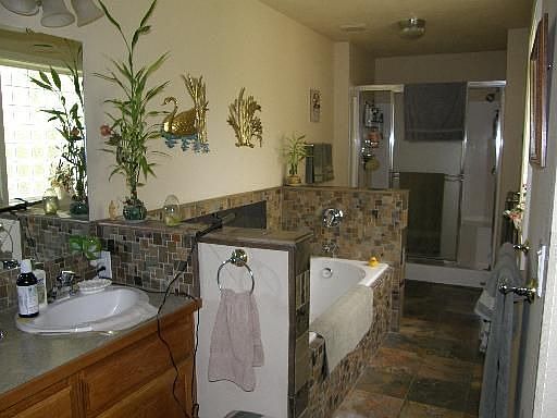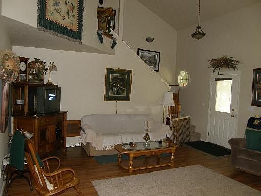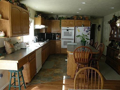 This is a lovely home situated on approx 1 1/2 acres with a circular drive and inviting curb appeal. Owners installed new wood floors, laminate, propane stove top and washable paint throughout in 2009. Backsplashes in kitchen and all bathrooms with elk and various etchings were done by a local artisan. Very private master, floor to ceiling fireplace, oversized 3 car garage, plus detached,insulated and drywalled shop.Meticulously landscaped with arched bridge, aspens and garden spot.Short Sale.