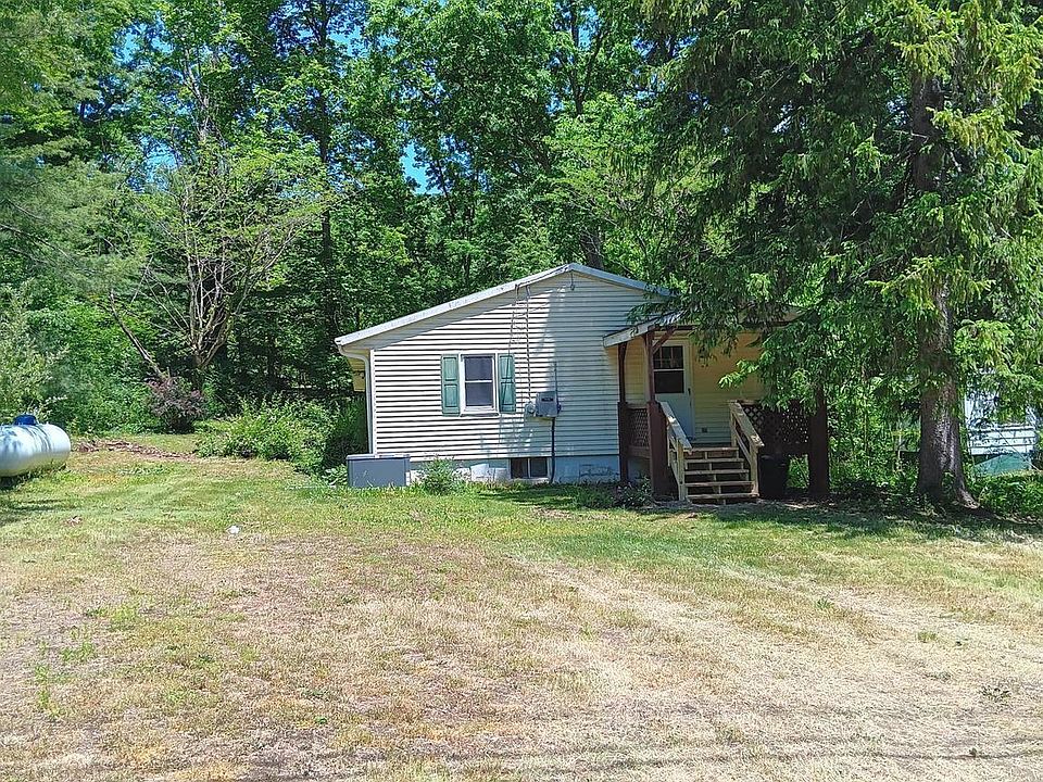 Many possibilities for this cozy bungalow with open floor plan. eat-in kitchen, large family/living room combo, situated in the rural, wooded community of Camp Strause. Fish in the lake nearby, as a member of the HOA. Being sold AS IS, with elbow grease and some renovations, this will be a lovely home. Living room can easily accommodate a wood stove or fireplace, for supplemental heat, and added desirability. Don't miss out on the opportunity to make this your seasonal or year-round living.