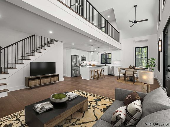Large islandWooded acresContemporary farmhouse designWooded viewsBlack quartz countersHigh-end stainless appliancesWall of windows
