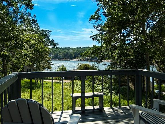 The views of Long Cove greet you as you enter this extremely charming year-round cottage. Sitting high upon the ledges overlooking the Cove this home offers spacious front and back decks, 3-5 bedrooms, a library, wood burning fireplace, beamed ceilings, wood floors and a feeling of being in exactly the right spot!! Includes a small lot with 60' of water frontage on Long Cove. Use of Association dock, tennis courts and clubhouse are available.