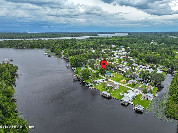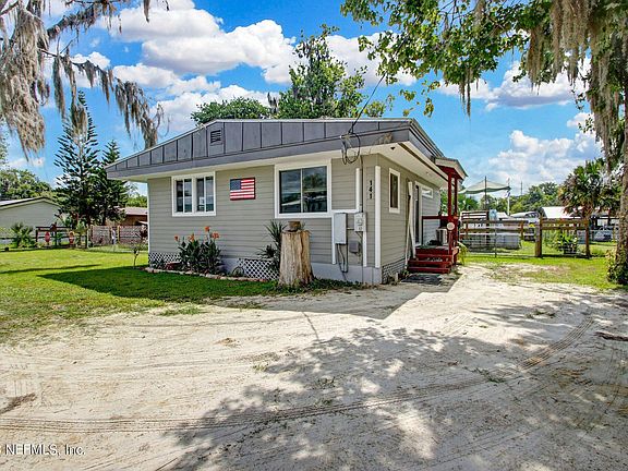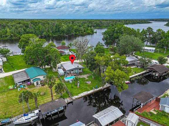 Enjoy fishing & boating in Dunn's Creek, the St. Johns River and beyond. This delightful, rustic, canal front, above ground pool home with your own boat ramp is sure to please. With beamed ceilings throughout the kitchen, dining and living room areas and hard wood flooring throughout all but the bathroom, the feeling of nostalgia is evident. The all-electric home features an instant hot water heater & refrigerator with icemaker. The canal front is fully bulkheaded with plenty of room for your watercraft. If you like to tinker, there is a nice size workshop with a couple of lean-tos for added storage and a fire pit in the fenced back yard to enjoy roasting hotdogs and marshmallows. The home offers easy access to Palatka, St. Augustine and the beaches.