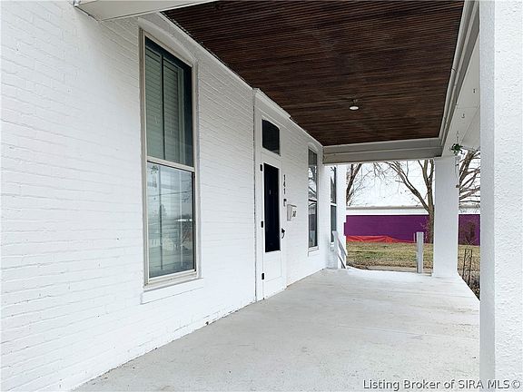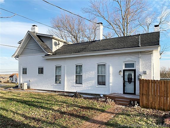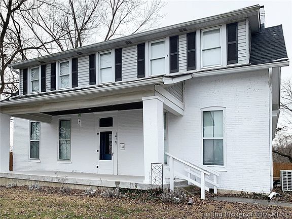 PRICE REDUCTION for this Amazing Historical-Style home in the Heart of Downtown Charlestown! HUGE rooms with 11-FOOT CEILINGS and ORIGINAL HARDWOOD throughout the the house. Three Fireplaces (all decorative). An Exposed Brick Accent Wall with the First Fireplace located in the Living Room. Adjacent to the Living Room is the Den or formal Dining Area which includes the 2nd, Dual-sided Fireplace. You'll notice Lots of Large Windows adding a tremendous amount of Natural Light throughout both floors! Completely Remodeled Oversized Bathroom with Tile Plank Floors, this Full Bath has Dual Vanities and a Large Tile-Surround Shower. The 2nd Full Bath has a Tub/Shower accented with a Barn Door. The open Kitchen has another Brick Accent Wall along the other side of the decorative Dual-Fireplace, Custom Butcher Block counter tops, Dishwasher, Microwave, Disposal, Custom Pendant & Recessed Lighting over a Center Island Range/Oven and Breakfast Bar! The Stunning Hand-Crafted Wood Staircase in the Large Foyer leads up to Two Additional Upstairs Bedrooms, each include Ceiling Fans and Dual Closets. Newer Roof (2018), New Exterior Paint, Newer Gas Furnace and Heat Pump (2018) with 3 additional Mini-split Units. A Wood Privacy Fence surrounds the Large Back Yard, and includes a Detached 24 x 25 Pole Barn Garage. Looking to create an ABnB in the Center of Old Town Charlestown? Check out the possibilities with this home. Hurry and Set Up your Showing Today!