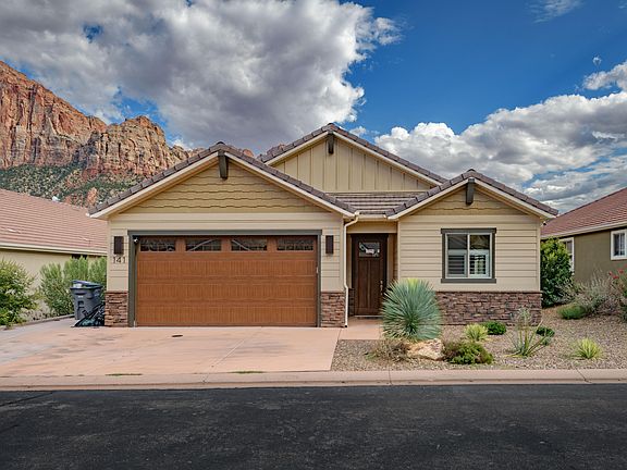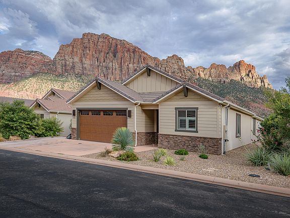 Located near the entrance to breathtaking Zion National Park, this charmer offers unparalleled panoramic views! Sitting just a few minutes walk from town conveniences and park trails, this home boasts quality construction and high-end modern amenities, including vaulted ceilings, smart wiring, a hot tub, and a heated garage. Glass slider doors in the great room and primary suite open to a private, covered patio that's perfect for outdoor living. With unique architectural details and mindful use of windows to allow natural light to pour in, you'll be anxious to call this home your own!