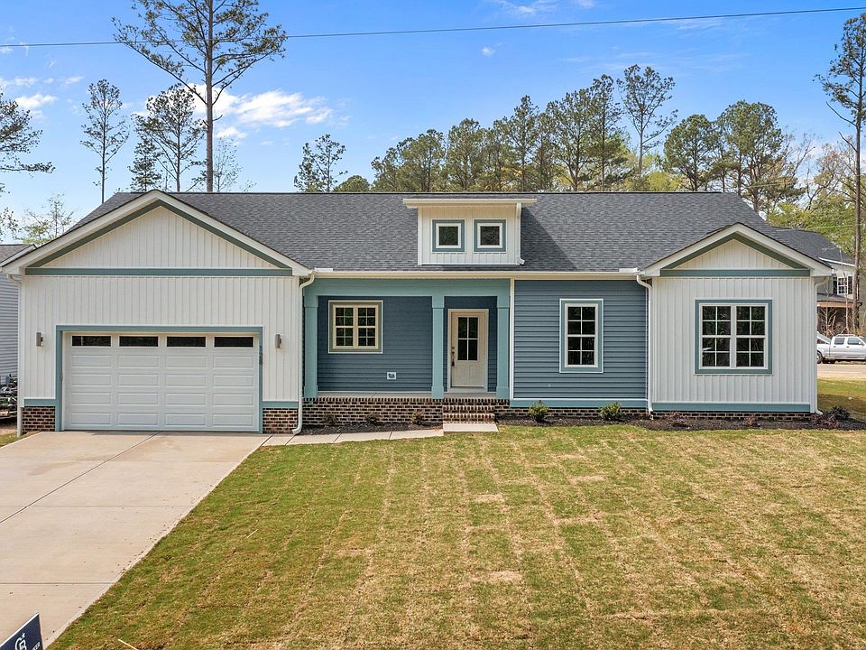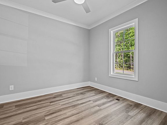 CUSTOM BUILT RANCH PLAN BY JPS HOMES ON CORNER WOODED LOT! USDA Eligible! Office/Flex Space! Wide Plank Luxury Hardwood Style Flooring Through Main Living! Kitchen: White Quartz Countertops, Custom White Painted Cabinets w/Crown Trim, Ornamental Tile Backsplash, Grey Painted Center Island w/Breakfast Bar & Beadboard Accents, Designer Glass Globe Pendant Lights, Recessed Lights, SS Appliances & Walk in Pantry w/Custom Wood Shelving! Open to Family Dining w/Triple Window & French Door to Rear Covered Porch! MasterSuite: Crown Molding, Recessed Lights, Accent Windows & Plush Carpet! MasterBath: Tile Floor, Custom Painted Dual Vanity w/White Quartz & Rectangular Sinks, 12x24 Tile Surround Walk In Shower w/Niche & Transom & Walk in Closet w/Custom Built ins! FamilyRm: Custom Painted Surround Gas Log Fireplace w/Box Beam Mantle, Ceiling Fan, Recessed Lights & Triple Window! Built In Mud Bench/Drop Zone off Garage!