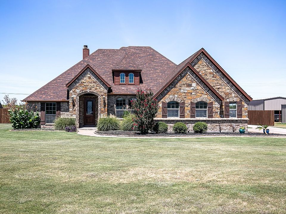 Beautiful Bailee Custom Home 3-2-2, on just over an acre in sought after Reatta Estates. No HOA and Outside City Limits. This home has everything you are looking for! Hand scraped wood floors in living area with a stone fireplace. Kitchen has custom stonework thru out, built in wine rack and granite counters. Large Primary suite, granite and tumble marble in bathroom area, garden tub, separate shower and walk-in closet. Large secondary bedrooms. Granite in guest bath. Office area has hand scraped wood floors. Saltwater pool and spa. Pool is also heated perfect for entertaining anytime of the year! 30x30 shop, insulated with electric and pull thru garage doors. Sprinkler system around the home. The home is also fully fenced with a gate at back and front of the property. Decatur ISD. This home is a must see! Buyer and Buyers agent to verify all measurements and information.