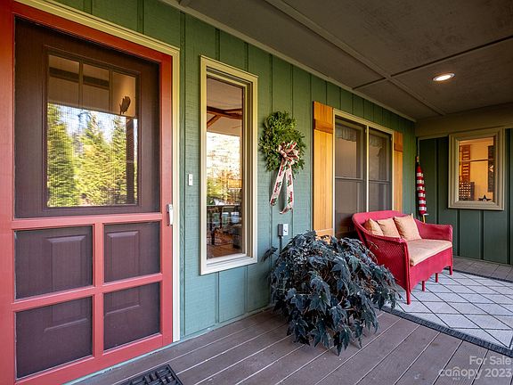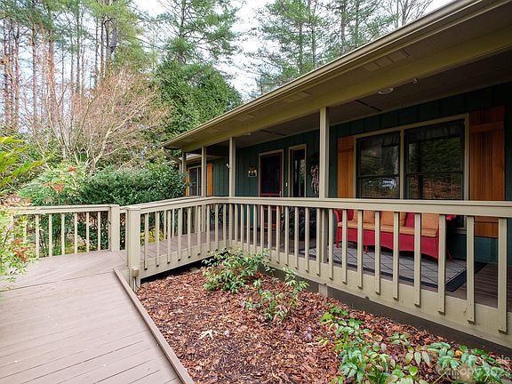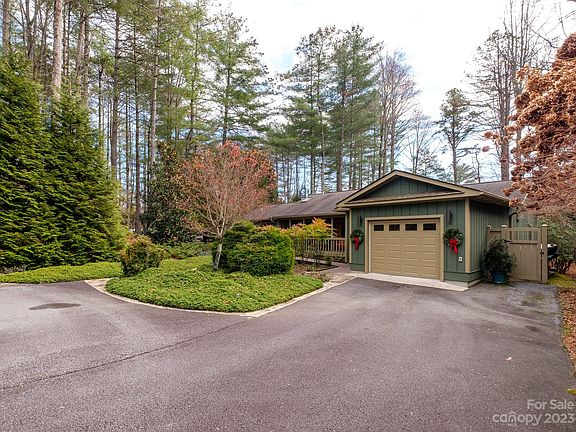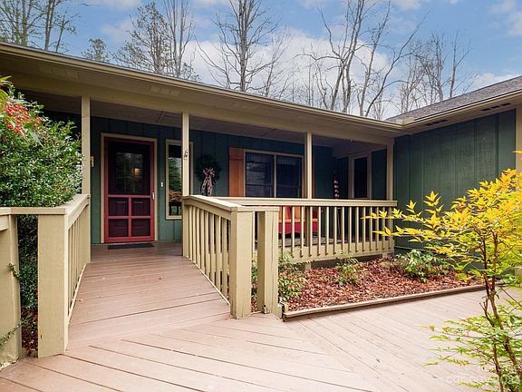 Welcome to one of the very few homes that sits on a perfectly flat lot in Connestee Falls. This well maintained 3 bedroom, 3 bath home is designed for easy living and it could not have a better location. This light filled home has high end features such as vaulted ceilings in the living room and sun porch as well as quartz countertops, cedar-lined closets and heated tile floors in 2 of the bathrooms. This charming single level residence has many features convenient for aging in place such as zero entry showers and a discrete ramp access to the front door. The master bedroom features french doors that open onto the expansive deck overlooking the fenced backyard and the 4th fairway of the golf course. If you have lots of toys or hobbies you will find parking for multiple cars in the driveway as well as a 12 x 31 tandem 2 car garage. The current owners use half of the garage as a workshop. This home is a 3 minute walk from Lake Atagahi park and a very short drive to the clubhouse.