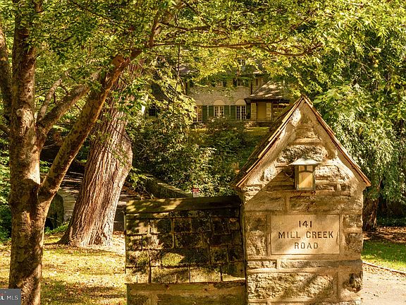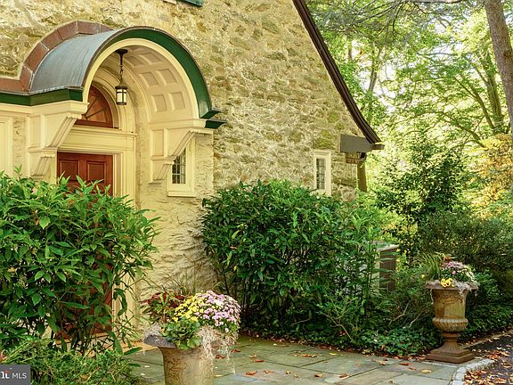 Welcome to a Fabulous English Country Garden Estate on the Main Line! This stunning home on 1.18 Acres is nestled in a private, wooded area of Lower Merion, yet is within walking distance to the train station. Built in 1912 by Allen Evans, the architect behind the Merion Cricket Club in Haverford, this home’s front exterior was inspired by the designs of Edwin Lutyens, a leading architect of English country houses in the UK. Constructed from large stones, the home boasts impressively thick walls and has been preserved in line with its historic character. The property features a grand wood burning fireplace in the great hall, four other fireplaces, a remodeled kitchen, six bedrooms, four and a half bathrooms, beautiful hardwood floors, two staircases (one off the kitchen and one off the hallway), two porches, a terrace, a balcony, a detached two-car garage, a shed, and charming gardens with a creek running through the property. The property has a common right-of-way to access the back path leading to Suburban Square, making it very walkable; and the train station, with direct route to Center City Phila and New York. The school district is Lower Merion. As you enter through the front door, charmingly tucked away on the side of the home, you are welcomed by a striking Mercer-tiled hallway. This elegant entryway features a series of double French doors that lead to two covered porches and the serene south garden. To the right, the garden study awaits, with a gas log fireplace and exterior door to the gardens. On the left, just up a few steps, you'll find a powder room and a spacious kitchen, complete with a Sub-Zero refrigerator and granite countertops. The kitchen seamlessly connects to a comfortable family room, with convenient access to the garage and back gardens. Adjacent to the kitchen, and accessible from both the hall and the kitchen, is the formal dining room, featuring a gas-log fireplace and three large twelve-pane windows that offer picturesque views of the back terrace and gardens. At the far end of the hallway, lies the magnificent great room, perfect for both relaxation and entertaining, featuring a stunning Mercer-tiled fireplace, french doors opening to the front and side gardens, and a large stone bay alcove with charming leaded windows. The second floor offers three en-suites, two wood-burning fireplaces, an office/den and plenty of closet space, including walk-ins. The primary suite includes a luxurious bathroom with heated floors, a sitting area, and a balcony large enough to accommodate a table and chairs. The third floor features three additional bedrooms, a full bathroom and access to the attic. The basement includes a laundry room, full house storage, and potential space for a wine cellar. This incredible house is a true masterpiece, combining historic charm with modern amenities in a breathtaking setting!