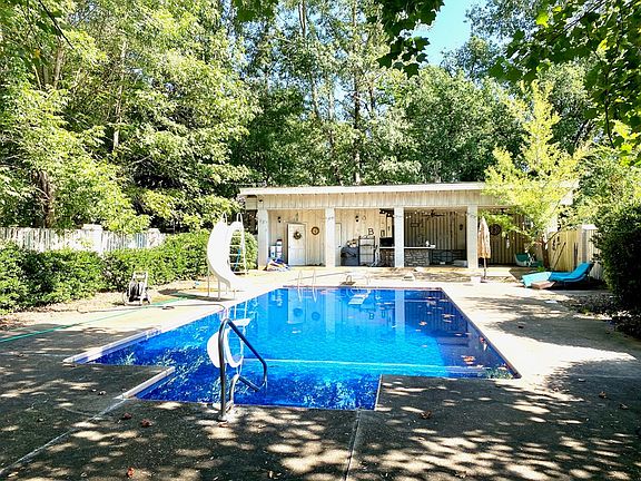 The ultimate home for entertaining or a large family! It has 4 bedrooms and 4 full bathrooms as well as an open kitchen and bar area with granite countertops and stainless steel appliances. There is a large master and a bonus/game room on main level; then a a large secondary master upstairs. The flooring consists of laminate hardwood floors and ceramic tile throughout (except for carpet in the secondary master). Pool has a new liner and has been winterized, with a slide and diving board. Adjacent to that is a covered hot tub area and a shaded cabana area with outdoor kitchen and bathroom.