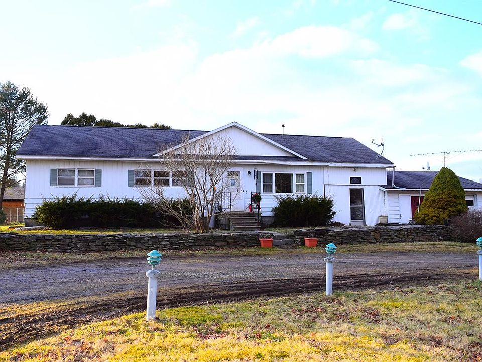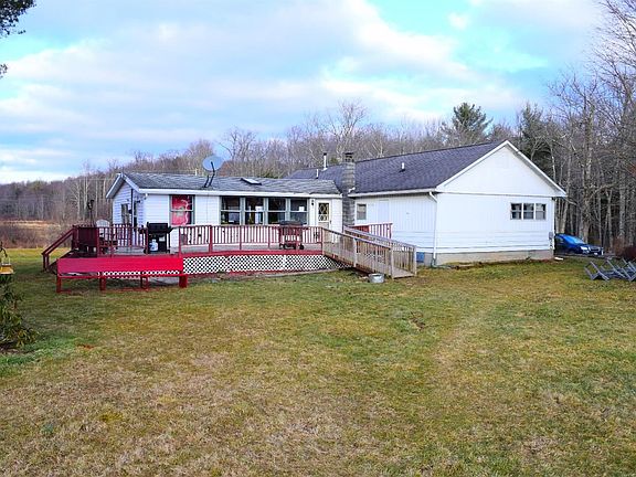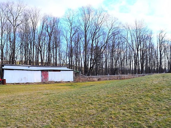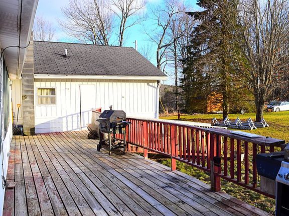 3 bedroom, 2 bathroom house on 6+ acres. Terrific property, with huge yard and fenced in pasture. House has a large private deck overlooking picturesque yard, large great room with cathedral ceiling and lots of windows. Pellet stove supplements heat keeping bills low during the winter. Master bedroom has large closet and bathroom. Attached two car garage, full basement, shed and building suitable to house animals makes this a perfect country home. <br>