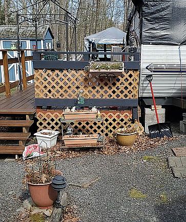 Mobile home 1 room lot of storage deck 10 by 30 and shed 10 by 10 dues are per year include garbage, electricity and snow removal