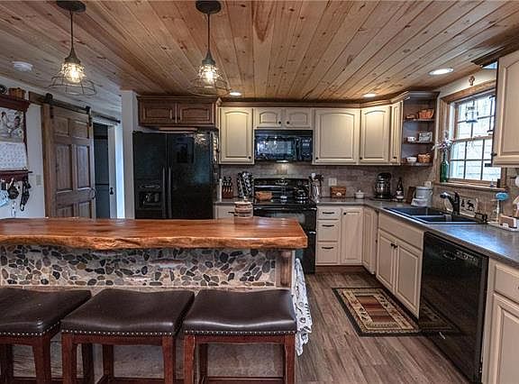 SHOWINGS BEGIN APRIL 9Have you always dreamed of owning your very own cabin in the woods? Well, look no further! Pride of ownership is generously stated throughout this 3-bedroom 2 full bath home with open loft area located within the Bear Creek Community. From the custom made window shutters, to the outdoor garden kitchen, to the spacious modern kitchen with custom tiled island, sliding barn door leading to the first floor master bathroom/bedroom, and the beautifully updated bathrooms, you'll have a tough time picking your favorite room in this home! Two sheds and a fire pit area finish off the added property amenities. On just shy of an acre, you'll wake up every day feeling as though you were on vacation!