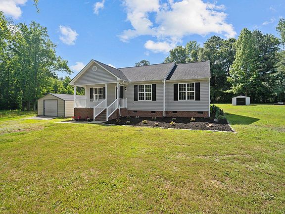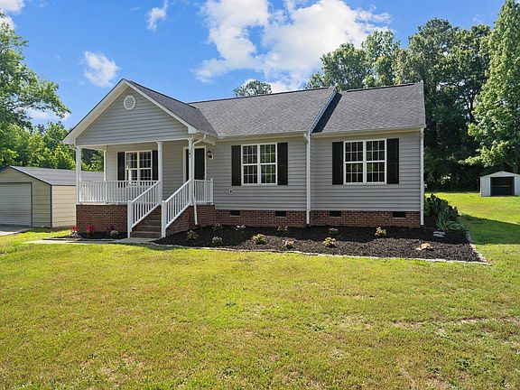 Charming & lovely ranch home on 2.36 acres--WOW! This home has been beautifully updated making it move in ready. The kitchen has white cabinets, new hardware, granite countertops & stainless appliances. The family room is super spacious & appears even more so with the vaulted ceiling. The split plan with the master bedroom on one side & the other 2 bedrooms on the other side offer privacy for the owner & guests. The master bathroom has a gorgeous double vanity--white, bright & on trend! The home offers wonderful closet/storage spaces as well as a laundry closet in the kitchen area. For storage on the property, you will find a detached garage/storage space or use the shed in the backyard. Enjoy the warm weather on the front porch or on the huge deck! Newer HVAC & the roof is 2023. Come tour this wonderful home & property! You will fall in love!