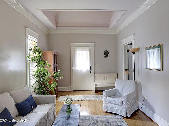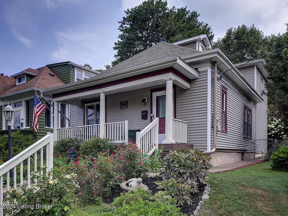You will love this delightful unique bungalow in Crescent Hill. This 3-4 bedroom, 2 full bath home with a nice welcoming vibe is in a great location a half block off Frankfort Ave shops and restaurants. The front yard is a lovely terraced garden, which leads to a covered front porch. The first floor has a vaulted ceiling entry, and is open to the living and dining room. At the rear of the home is a large eat/in kitchen with an island, white cabinets and ample room to prep and cook. Two bedrooms, (one currently being used as an office), along with a full bath with walk-in shower are also on the first floor. Just off the kitchen is a large laundry room with many cabinets and shelving for ample storage. There is also an entrance to the cellar. The second floor has an en-suite bedroom, spacious full bath with claw foot tub and walk-in closet. Another room has and an exposed brick wall and can be another bedroom or office. A backyard oasis, previously on the Crescent Hill Garden tour, will surprise you. There is a large deck, a gazebo, pond, a craft shed with a bay window, storage shed and an oversized carport. No stairs from the carport to the back door.