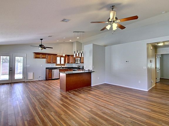 This 3 bedroom home offers an optional office/bedroom area with valuated ceilings in the great room, fresh paint and new vinyl wood plank flooring throughout. Upgrades to the home include an integrated networking hub for your electronic devices, Kinetico water system, custom metal art RV gates, concreted RV parking with hookups and afinished accessory workshop building with electricity. The large master bedroom sits to the back of the home and features a walk-in shower. The home has air-conditioning, natural gas and cable internet available. A private forested property is located behind the home.