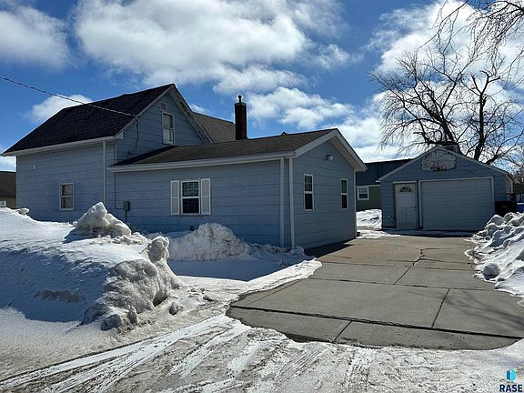 Great house on corner lot consisting of 4 beds, 1 bath! Nicely situated close to downtown, public school, pool and park. This home features a cozy floor plan with painted kitchen cabinets, separate pantry, nice flooring, and remodeled bathroom with laundry included! Open and bright living room with large windows. Huge remodeled main floor bedroom with large closet which could also be used as another living space. Second bedroom also on the main floor with a spacious closet. Additional rooms upstairs. Basement level is home for the mechanicals such as recently replaced water heater. Natural gas furnace, central A/C. Detached single garage. Large area of cement patio to enjoy!