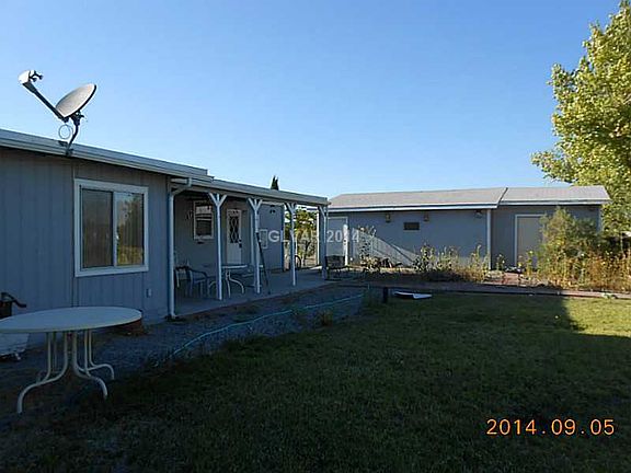 Corner lot in peaceful location. Clean manufactured home with fully fenced yard, landscape, 2 car garage, covered patio and additional storage buildings. Isn't that everything you've been looking for? Addition on 3rd bedroom works as an office or crafts room. Sliding door to covered patio. Property is centrally located off Basin. Relax on the covered patio and look out over the lawn to Mt. Charleston.