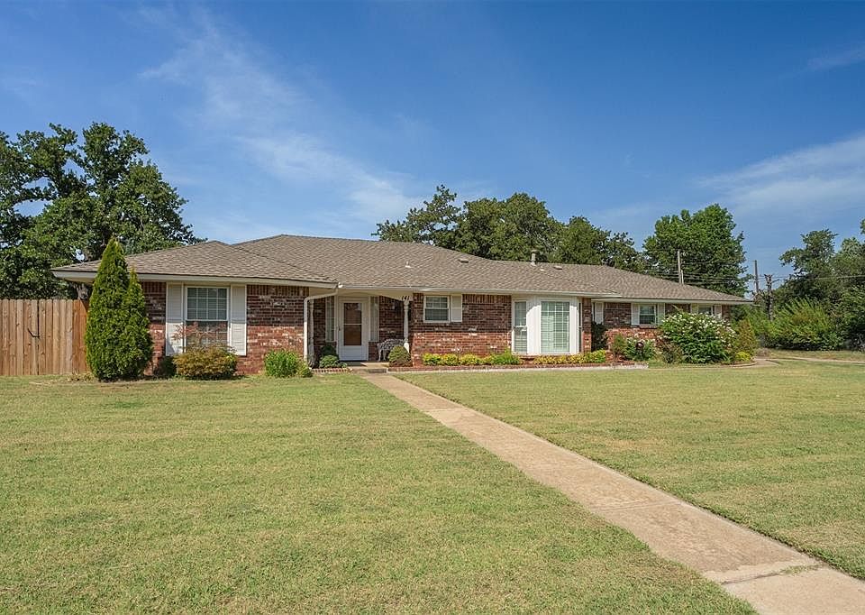 Remarkable Property and home with 3 bedrooms, 2 bathrooms and a 2 car attached side load garage on a beautiful .68 acre corner lot. Storm shelter, open living with formal dining. Kitchen has island cooktop with a really cool stainless vent hood, pantry, generous cabinets and large eating area. Large laundry room with a built in desk. Florida room(not included in Sqare Footage), Walk-in closets, HVAC system 3 years old, plantation shutters, outbuilding and large storm shelter. Easy access to shopping, restaurants, healthcare, major highways and Tinker AFB.