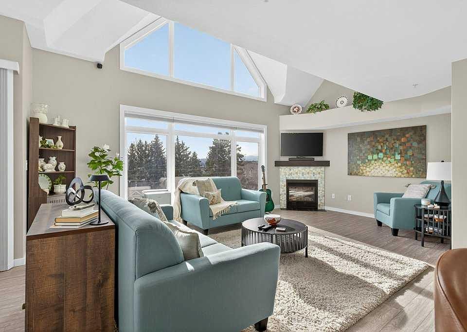 Natural lightVaulted ceilingsMassive windowsExpansive wrap-around balconyBright open designFresh paintMeticulous upkeep