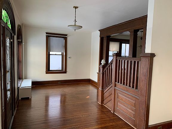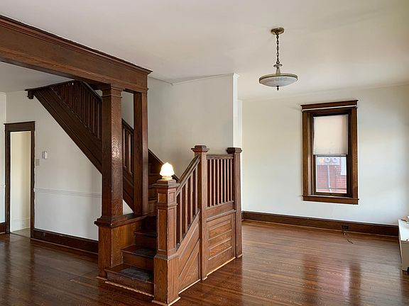 Amazing woodwork and stained glass in this 2 story apartment offering large open living room with high ceilings, dining room, kitchen, 2 bedrooms (one with a privacy violation) w/d hook up in basement and full bath. All walking distance to downtown, rails to trails, pool, schools and park. Owner pays trash and lawn care. This unit is a key show-you may come into our office Monday-Friday 8:30 AM-4:30 PM to pick up a key with your ID and look at the unit on your own and return the key the same day. This unit is no pets and no smoking! If interested in the property after you view the unit, you will need to complete a rental application which is a non refundable fee of $30.00 and covers your credit (minimum credit score of 600) and criminal background screenings. We also verify that your household income is three times the rent amount after taxes (net). No bankruptcy, short sale, or foreclosure within the last 2 years. Your application will be automatically denied if you have any current or previous landlord tenant actions against you or any evictions. We do not allow any co-signors!