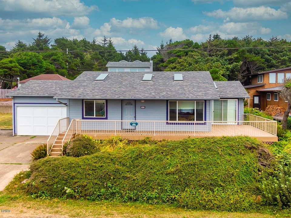 This is the Perfect Beach House and it's just a short distance from the ocean where you can walk for miles on sandy beaches. Check out the extensive decks in front and back extending the living area and offering privacy in the back. Bright and cheery, fully furnished and currently a turn key vacation rental. Just unpack your suitcase and enjoy all the beach and Yachats have to offer. Well maintained means you can relax and have fun from the moment you arrive. Recent updates include siding, roof, garage door, and decks.