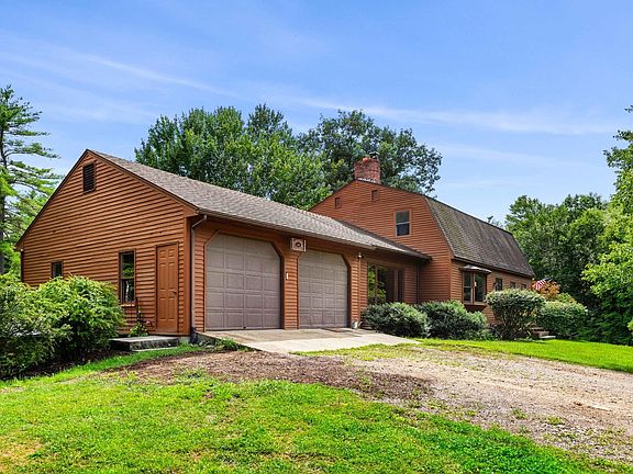 Nestled in the heart of nature, this spacious 3-bed, 1.75-bath 1977 Gambrel-style home offers the perfect blend of privacy, modern amenities and outdoor adventure on 24 acres of mostly wooded land. Situated at the end of a long driveway, this secluded property feels remote yet is conveniently located just 5 minutes from Rt 93 and 10 minutes to Concord. Energy-efficient appliances, solar panels (seller owned), generator. Fieldstone hearth, pellet stove, and new efficient electric heat. Large office with built ins. First floor bedroom, bath and laundry. Second floor has large primary and 3rd bedroom and bath. Plenty of storage. Newly installed engineered hardwood floors on entire 2nd floor. Attached 2 car garage and additional bay below for storing ATVs, motorbikes, small boats, or lawn equipment. Woodshop area for hobbyists or professional use. A large sunroom provides views of the raised bed gardens, raspberry patch, pond. Birdwatchers will love the many bird species. Small patio area and firepit. Network of trails for walking, skiing, riding. Wilderness campsite complete with tent platform, fire pit, and covered outdoor rustic kitchen. Pole barn. Maple sugar bush. Hayward Brook meanders through the property and creates a pond for birding or winter skating. Close to White Mts, Lakes Region. Delayed showings until Wednesday, August 28. Listing agent related to seller.