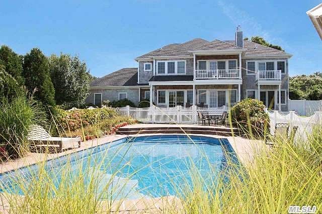 Gorgeous water view from this Shinnecock Hills classic Hamptons style home over Peconic Bay. Rare open run and play space in a fenced in yard with lots of grass, beautiful pool and short walk to bay beach.