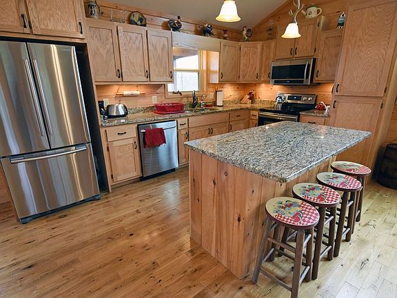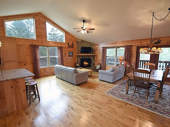 Natural Light Floods this Quality 2/2 Ranch Cabin. First impression will be "WOW, look at this Great Room"! Hardwood Floors throughout. Wood/Sheetrock Mix, Corner stone gas log fplc, Beautiful Kitchen w/ granite tops, Many windows. 2BRs w/ Vltd ceilings & open display shelves. 2 Tiled floor Baths. 5 ft shower in one and tub in the other. Granite top vanities. Wide Hallway. Amazing Outdoor living w/ 400 sq ft SCREENED porch on the back & 400 SQ FT Covered Porch on the front. Level/gentle yard. 1 Acre. Distant mountain views. In the Lake Nottley area close to Lake Nottley Dam, TVA boat ramps, and Poteete Creek Recreation Area. Additional land available. Few restrictions on deed.