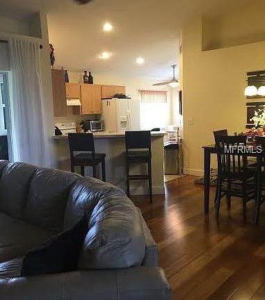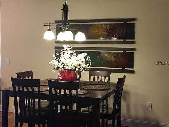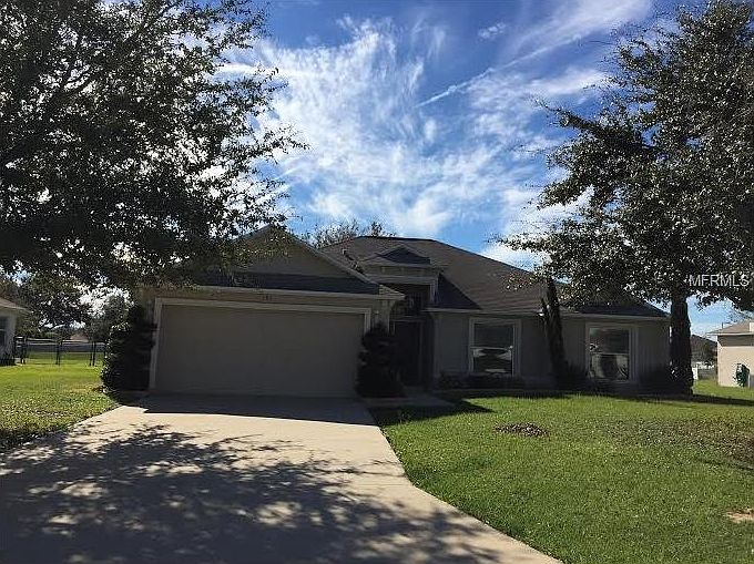 Move in ready 4/2 home sits on almost 3/4 acre lot. Home offers a split open floor plan. Eat-in space in the kitchen as well as dining area. Kitchen is open to the living area with a breakfast bar and pantry. High ceilings with beautiful ceiling fans/lights throughout. The home has recently been repainted inside, has new flooring. Living/ bedrooms have bamboo flooring. Kitchen/baths have vinyl. No carpet in this home! A/C approx 1 year old. New energy saving windows in the back of the home. Entryway offers lovely French doors. The screened patio (faces the back yard)can be entered from the mstr bedroom and living room. The living room offers triple sliding doors that all slide behind the wall to enjoy the openness this lovely home offers. The master bathroom has separate his/hers vanities/sinks and offers a large shower and separate garden tub. Inside laundry room adjacent to the master bedroom. Garage has opener w keyless entry pad and attic access w ladder. Home has alarm system. The yard has an irrigation system. This home is ready for the family who enjoys entertaining and/or the open floor plan perfect to spend quality time w/family and friends. This community is 2 miles from major shopping and restaurants and just down the road from the city park offering soccer and baseball fields. Just minutes to the 570 Toll Rd taking you easily to Interstate 4 to Tampa and Orlando perfect for access to local attractions and airports. This is a must see! Shows like a model home. You won't be disappointed.