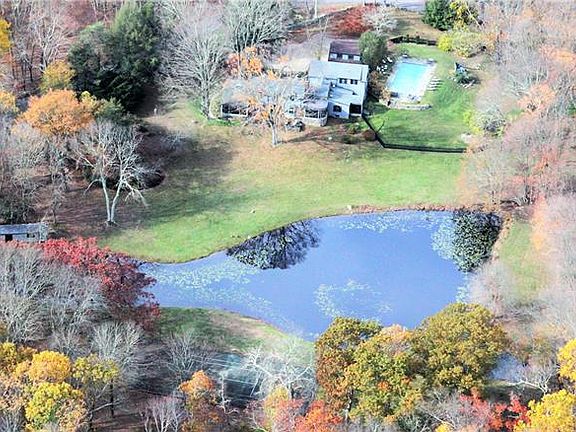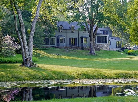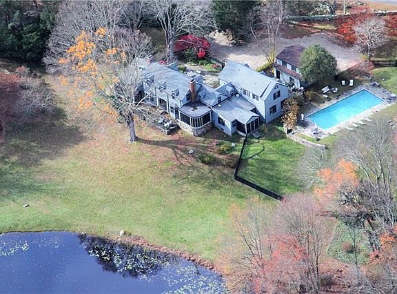 Nestled on over five picturesque acres on an idyllic country road, this sprawling home captures the best of country living in a tranquil and convenient locale. Perfect as a small compound, this seven bedroom home with common rooms featuring five fireplaces, a private pond, boathouse, tennis court, and pool, is ready for new owners to style as their very own. This home's banks of windows provide scenic views from every vantage point. A floor plan of generously proportioned rooms flowing onto garden patios give the feeling of a lovely inn. The separate 2-bay pole barn garage with a walk up attic provides plenty of room for projects and/or storage. Conveniently located to Scotts Corners, New Canaan train station. Minutes from nature preserves, school, town park, award-winning golf & The Inn at Pound Ridge by Jean-Georges.