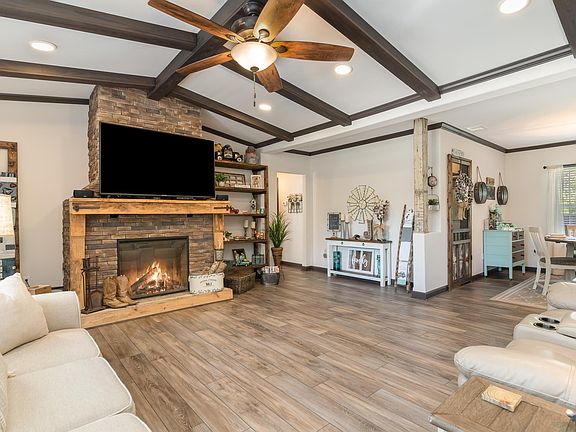 - Features: Beamed Ceilings, Ceiling Fan(s), Fireplace
