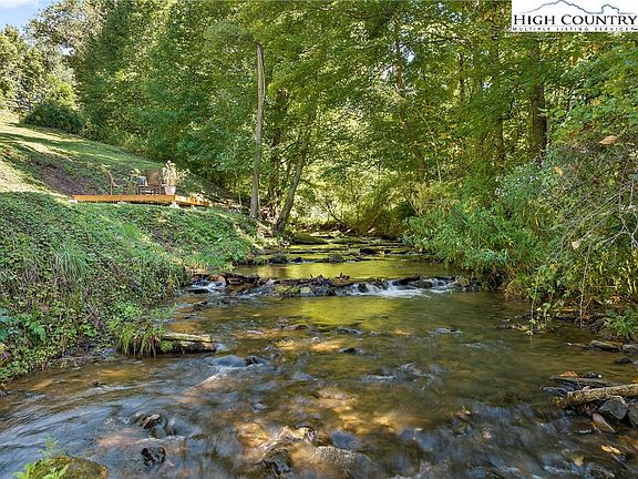 SPECTACULAR CREEK PROPERTY. Complete with a VIEW, and FLAT LAND-LOOK NO FURTHER for your own mountain paradise. New construction, 2 bedroom, 2 bath with a bonus room and office area. Thoughtfully designed, open, bright with lots of windows, soaring ceiling, wood floors, modern with a rustic flare, spacious covered and uncovered deck overlooking the robust creek leading to a small cave. Great room has a wood burning stove, and 3 mini split zones provide heat and air throughout. Main level has a bonus room for an additional sleeping area. Play, fish, and swim in the creek, (236' of creek frontage) dine on the landing, all this and a flat yard for entertaining. Wind down your day and relax at the firepit. Ideal mountain get away and exceptional vacation rental. Furnished and ready to occupy. LED lights throughout and whole house on demand hot water. Oversized carport has additional workshop. Minutes to Newland, Banner Elk, area attractions, ski resorts and restaurants. See video for creek tour.