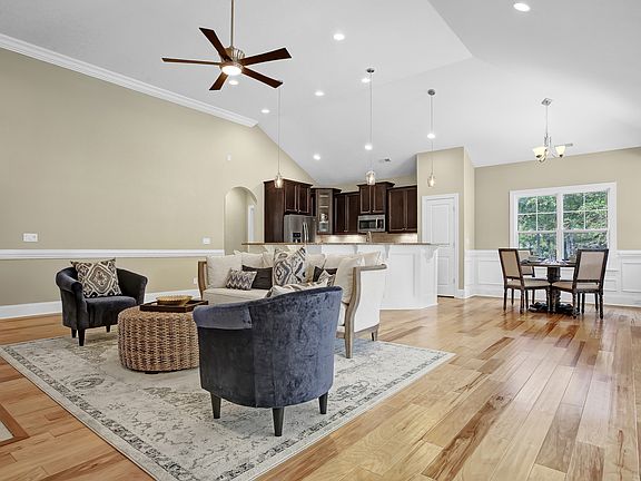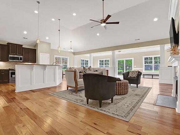 Move-in ready New Construction! A 1-year boat ramp membership, TV, washer/dryer, frig & furniture included in the price! This 4 bed/3 bath, 2576 sqft Shorebreak plan sits on a gorgeous landscaped 1/2-acre golf course lot w/ irrigation. Vaulted Great Rm w/custom trim thru out! The Master has presidential ceiling w/ ambient rope & recessed lighting, tile shower w/niche & seat, dual Moen showerheads & built-in shelves! This home is loaded: Mohawk H/W, tile laundry room w/storage cubbies, lge scrnd porch, grill patio, USB ports, surround sound & alarm pre-wire, gourmet kitchen w/ granite countertops, lge kitchen island, SS appliances, 42-inch wood cabinets w/ soft close doors/drawers & trash can rollout, tankless W/H, sunroom w/built-in shelves & beadboard tray ceiling, Trane multi-zone A/C. HOA only $50 yr.