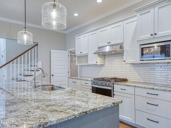 Enjoy main level living with this beautiful 3 bed and 3 bath home. This one is located in the coveted Acadia Villas subdivision in Lenoir City just minutes from schools, shopping, entertainment, and quick access to I-75. This home features a split bedroom floorplan with 2 bedrooms on the main level. The large owner's suite is tucked privately at the rear of the home and showcases a tray ceiling, luxurious bathroom with dual vanities, large soaker tub, walk in shower, and a generous walk-in closet. A second bedroom and full bath are also located at the front of the home. Ideal for guests or a home office setup. The gourmet kitchen boasts granite countertops, a spacious island with bartop seating, pantry space off the laundry, and stainless-steel appliances including gas range, built-in microwave, and dishwasher. The living room showcases a granite-wrapped gas log fireplace and dual French doors which lead to an expansive screened and covered back patio. It's perfect for entertaining or enjoying evenings outside. A new metal fence encloses the backyard making for a great space for pets or little ones. Upstairs, you'll find a third bedroom, a third bathroom, a large bonus room/flex space, and a large walk-in unfinished storage space with potential to finish. Additional upgrades include custom blinds throughout, a Nest thermostat, and a premium RainSoft whole-home water and air purification system—offering comfort and air quality you can feel.